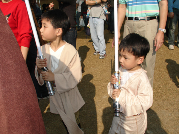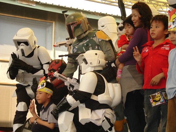 在小朋友面前,黑武士更顯巨大威風!!