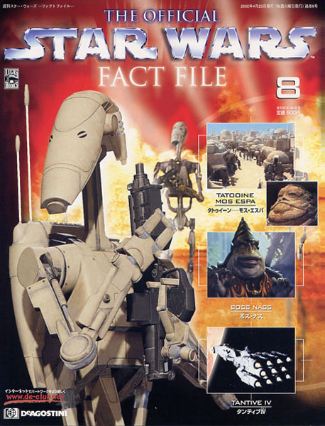 這一套週刊的內容真的很豐富,圖片也很精彩 本來站長實在很想對每一集的內容好好介紹 但站長的日文實在不行,只好POST封面給大家過過乾癮 Star Wars Fact File目前已有英文、日文及西班牙文等版本在美國本土以外發行 但美國本土已有好多星戰雜誌, 為避免市場負荷不了,反而沒有發行... (PS.感謝網友AHO補足數集封面)