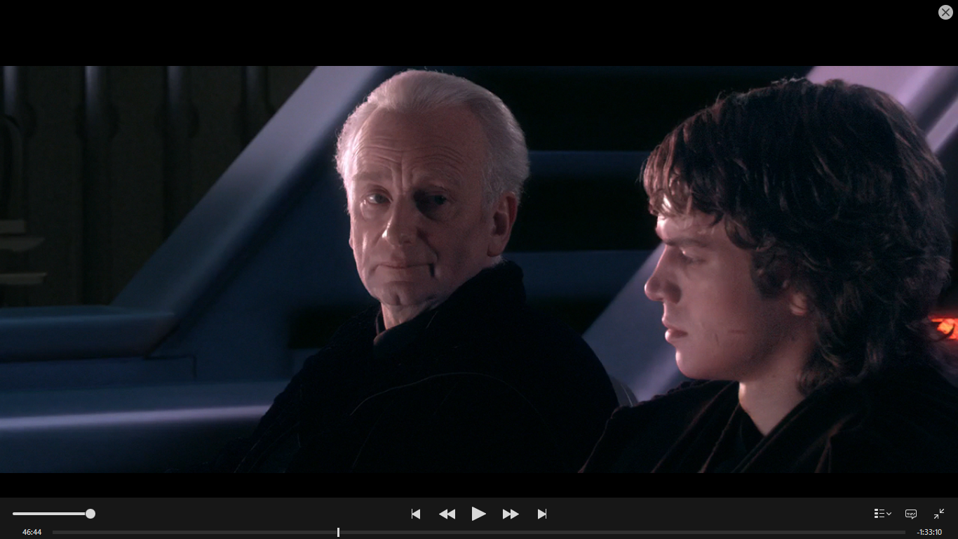 41.議長召見安納金,告知葛瑞費斯將軍躲在烏塔堡星球,但絕地議會不會讓安納金去立下這功勞 並煽動安納金,讓他認為絕地議會會背叛議長,背叛銀河議會,背叛共和國,背叛民主