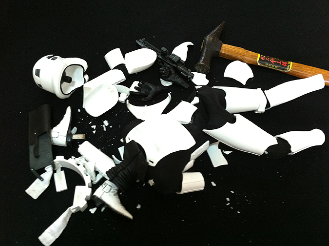 1.收到瑕疵品後,去信跟Sideshow反應,Sideshow本來說,要補償25元美金給我讓我自行黏貼修補,我不要,我希望Sideshow更換新品給我,或我寄回去請Sideshow修補,但Sideshow表示「他們沒辦法修補」,但也不能夠直接寄新品給我換,因此要我把瑕疵品打碎寄照片給牠們看,然後他們會全部退費,我拿到退費後,再跟他們重新訂一隻。